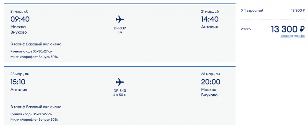 Из Москвы в Анталью на выходные 13.300 рублей туда-обратно.