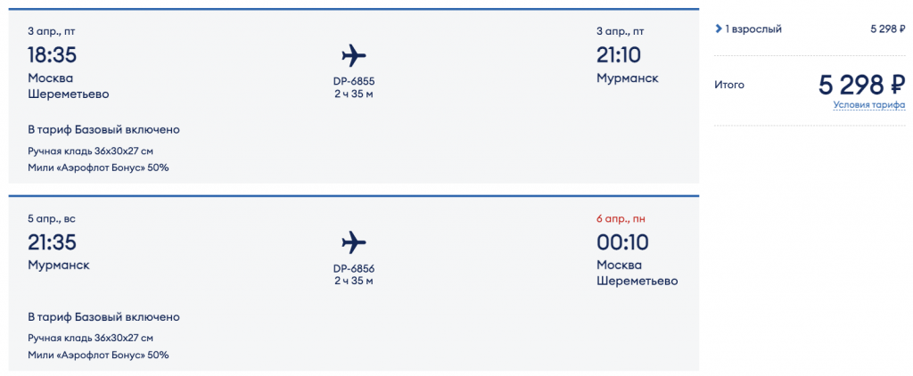 Из Москвы в Мурманск на следующие выходные 5.300 рублей туда-обратно.