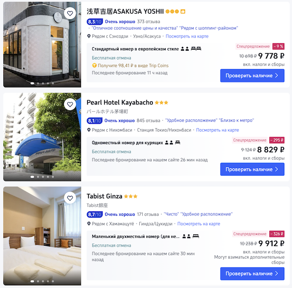 Как забронировать: перейдите по ссылкам в примерах или выберите другие даты на трип.ком.