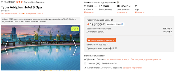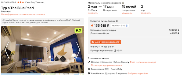 — прямой перелет на Пхукет и обратно, авиакомпания AzurAir;