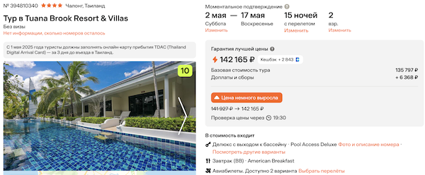 Tuana Brook Resort & Villas 4* с завтраками 71.100 рублей за человека (142.200 рублей за двоих)