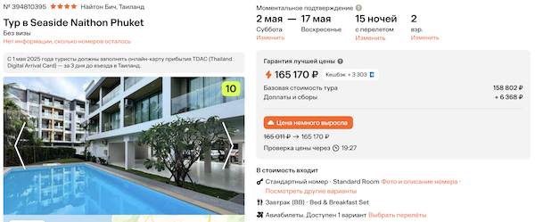 Seaside Naithon Phuket 4* с завтраками 82.600 рублей за человека (165.200 рублей за двоих)