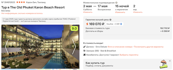 Горящие туры из Москвы на Пхукет от 64.100 рублей за человека.