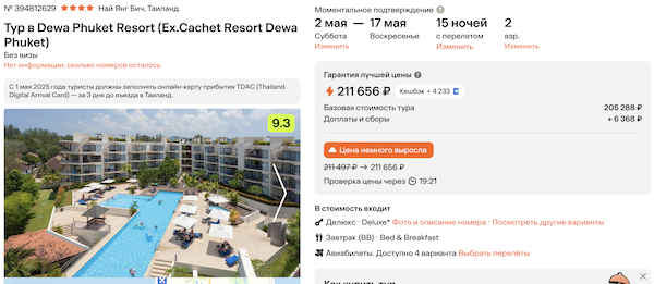 Dewa Phuket Resort 4* с завтраками 105.800 рублей за человека (211.600 рублей за двоих)