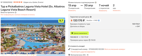 Pickalbatros Laguna Vista Hotel 66.600 рублей за человека (133.200 рублей за двоих)