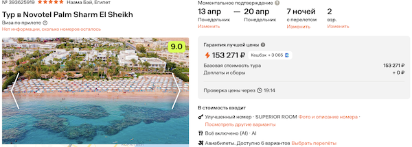 Novotel Palm Sharm El Sheikh 76.600 рублей за человека (153.300 рублей за двоих)