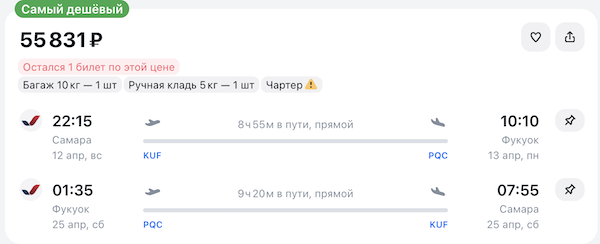 Горящие билеты на прямые чартерные рейсы на Пхукет и Фукуок от 25.800 рублей туда-обратно.