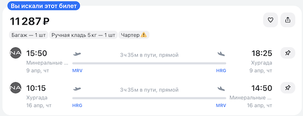 Из Минеральных Вод в Хургаду с 9 по 16 апреля