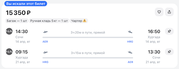Из Сочи в Хургаду с 7 по 14 апреля или с 14 по 21 апреля