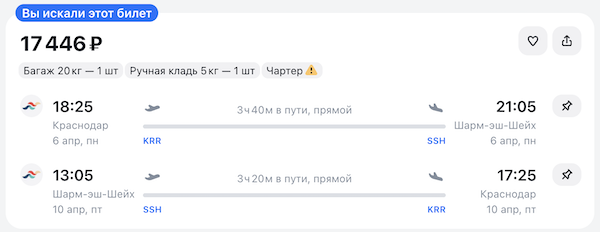Из Краснодара в Шарм-эш-Шейх с 6 по 10 апреля