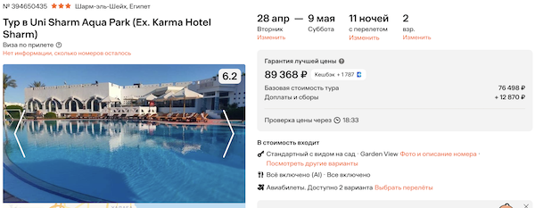 Uni Sharm Aqua Park 3* 44.700 рублей за человека (89.400 рублей за двоих)