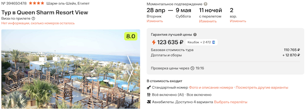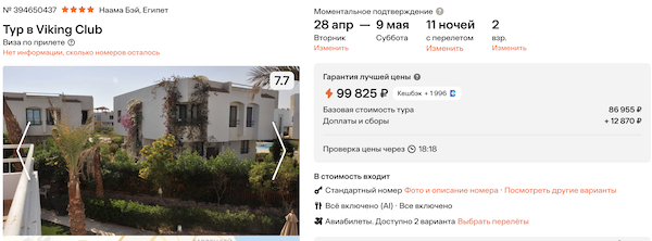 Стоимость в примерах указана за одного человека при условии поездки вдвоем, стоимость туров для одного человека можно посмотреть здесь или на страницах отелей.