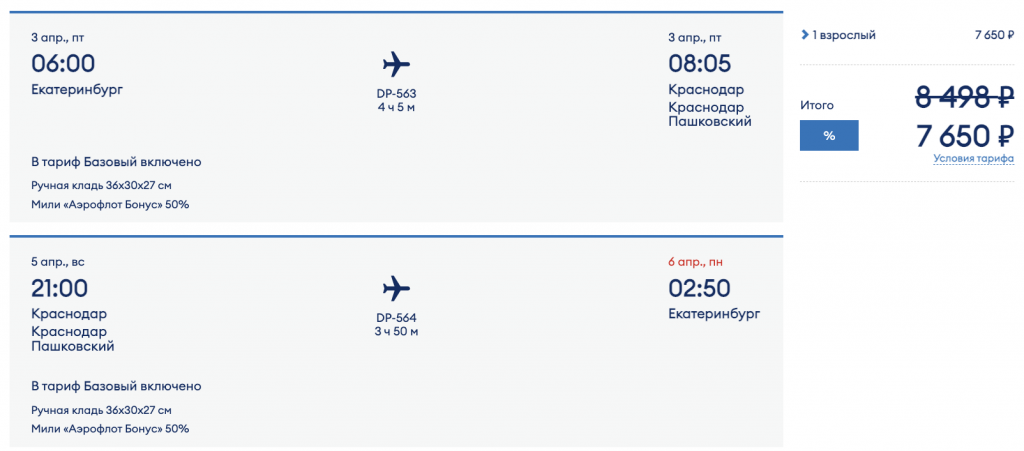 Из Екатеринбурга в Сочи и Краснодар от 5.400 рублей туда-обратно.