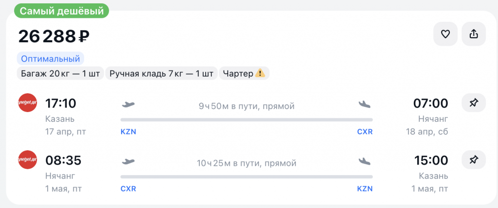 Горящие билеты на прямые чартерные рейсы из Казани в Нячанг 26.300 рублей туда-обратно.