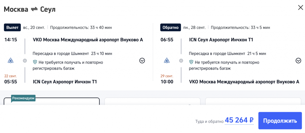 В Южную Корею осенью: билеты из Москвы в Сеул от 45.300 рублей туда-обратно.