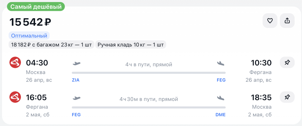 Горящие билеты из Москвы в Узбекистан от 15.500 рублей туда-обратно.