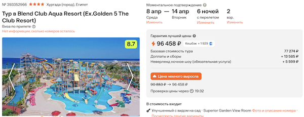 Стоимость в примерах указана за одного человека при условии поездки вдвоем, стоимость туров для одного человека можно посмотреть здесь или на страницах отелей.