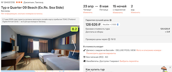 Quarter 09 Beach 3* 63.300 рублей за человека (126.600 рублей за двоих)