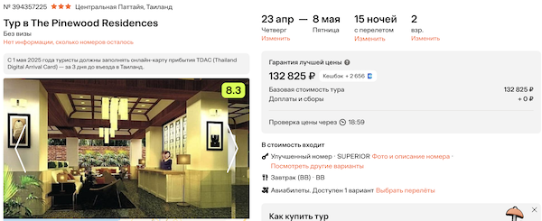 The Pinewood Residences 3* с завтраками 66.400 рублей за человека (132.800 рублей за двоих)
