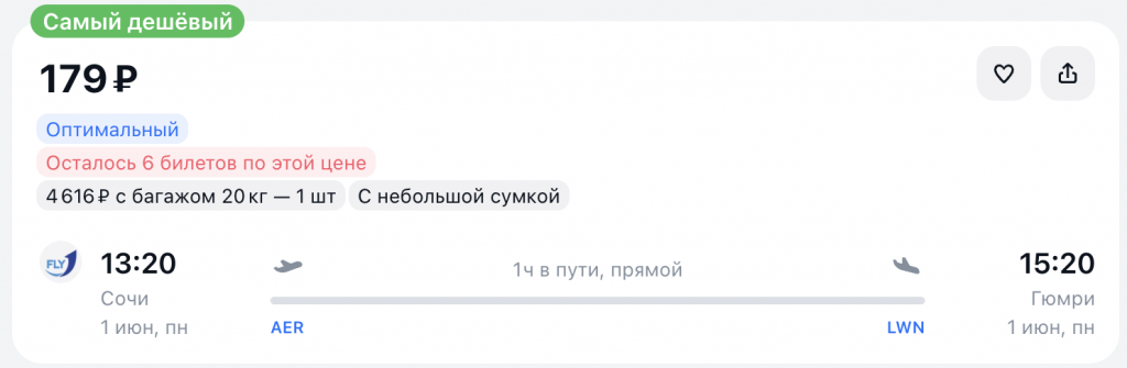 Между Сочи и Арменией (Гюмри) 179 рублей в каждую сторону.