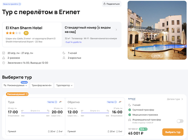 Стоимость в примерах указана за одного человека при условии поездки вдвоем, стоимость туров для одного человека можно посмотреть здесь или на страницах отелей.