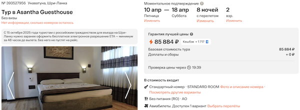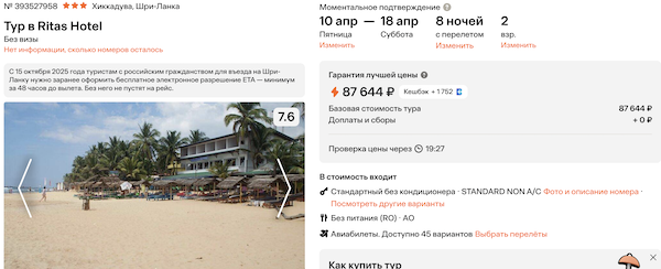 Горящие туры из Москвы на Шри-Ланку от 42.900 рублей за человека.
