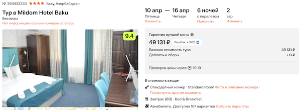 Стоимость в примерах указана за одного человека при условии поездки вдвоем, стоимость туров для одного человека можно посмотреть здесь или на страницах отелей.