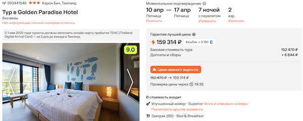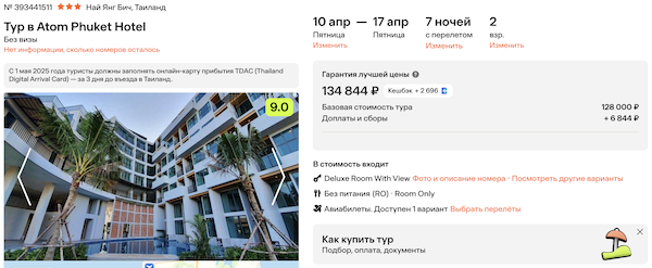 Горящие туры из Москвы на Пхукет от 67.400 рублей за человека.