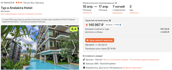 — прямой перелет на Пхукет и обратно, авиакомпания Azur Air;