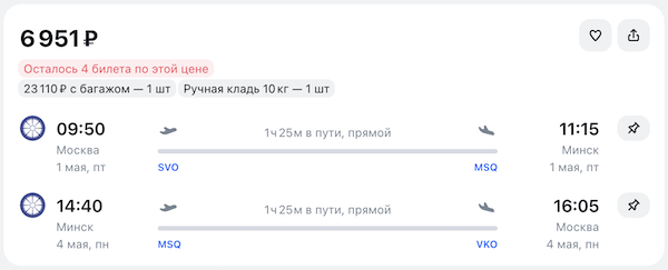 Как забронировать: перейдите по ссылкам в примерах или выберите другие даты на авиасейлс или сайте авиакомпании.