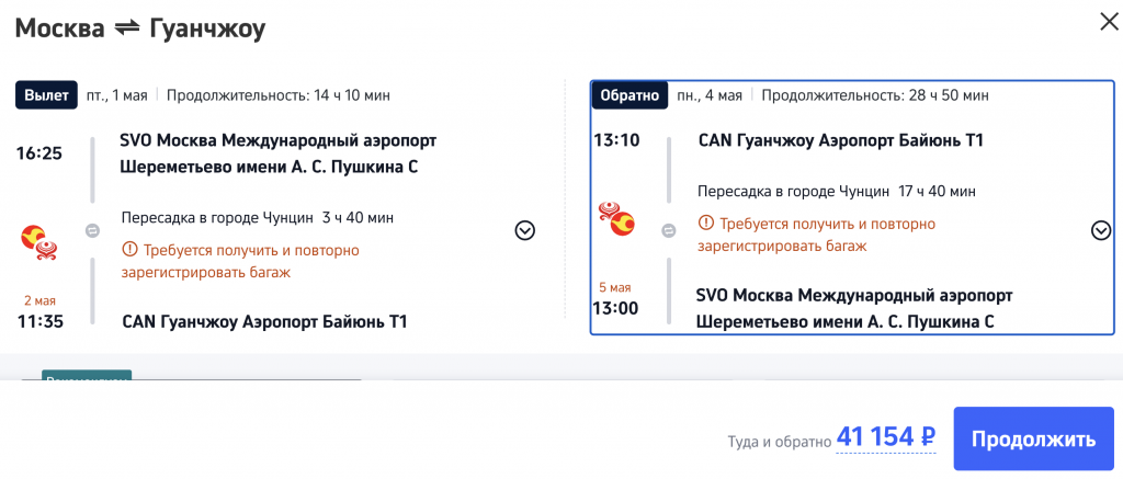 Майские праздники в Китае: билеты из Москвы в Гуанчжоу от 41.200 рублей туда-обратно.