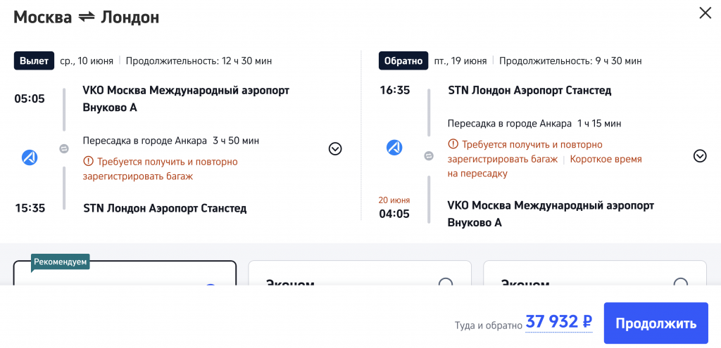 Рейсы выполняются авиакомпанией AJet с пересадкой в Анкаре.