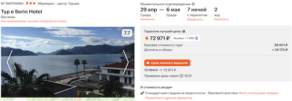 Горящие туры из Москвы в Мармарис от 36.500 рублей за человека.