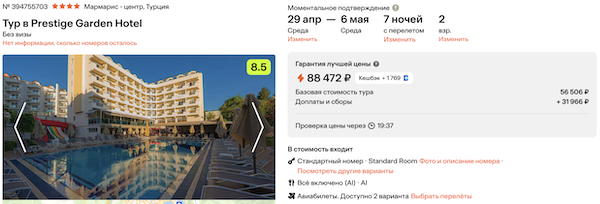 Prestige Garden Hotel 4* все включено 44.200 рублей за человека (88.500 рублей за двоих)