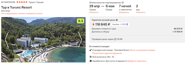 Стоимость в примерах указана за одного человека при условии поездки вдвоем. Стоимость туров для 1 человека можно посмотреть здесь или на странице отелей, изменив количество туристов.