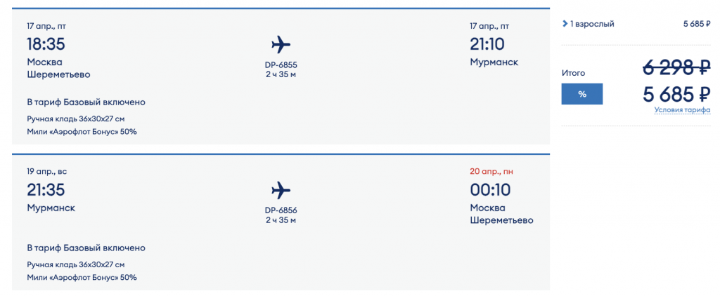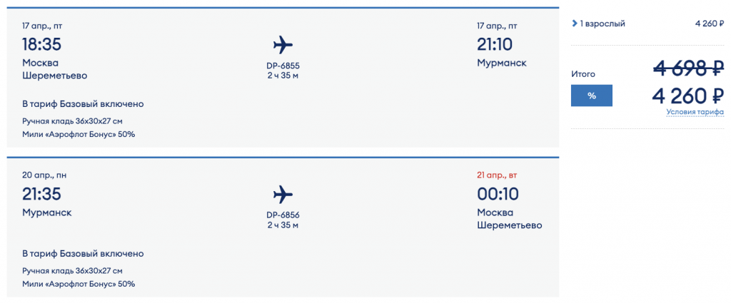 Из Москвы в Мурманск на выходные от 4.300 рублей туда-обратно.