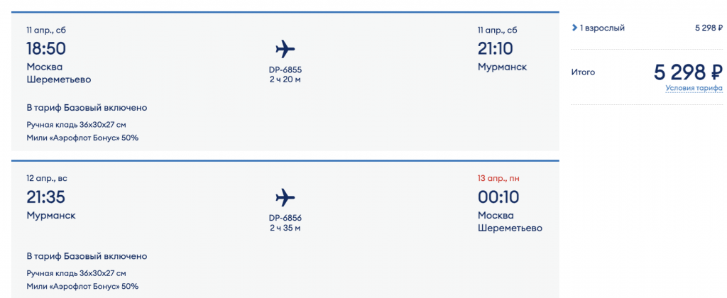 Из Москвы в Мурманск на следующие выходные 5.300 рублей туда-обратно.