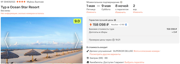 Туры из Москвы во Вьетнам на майские праздники от 77.300 рублей за человека.