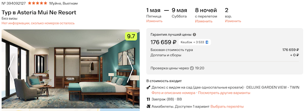 Asteria Mui Ne Resort 5* с завтраками 88.300 рублей за человека (176.700 рублей за двоих)